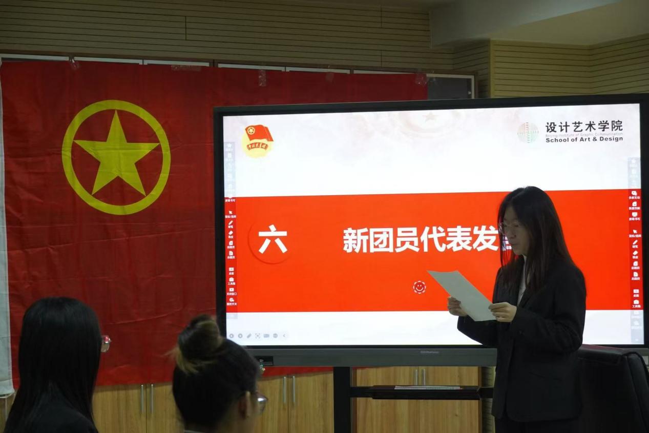 新发展团员代表曹钰菲发言,表达入团的激动与喜悦,立志以优秀团员为榜样,努力学习,积极进取。